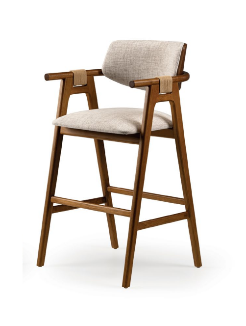 Ayla é um símbolo de elegância e funcionalidade que transcende o design tradicional. Com uma estrutura em madeira, cuidadosamente usinada para expressar leveza e qualidade, a banqueta conta com encosto em tecido e madeira, evocando uma estética atemporal e acolhedora. Detalhes em corda trançado nos apoios realçam o toque manual, enquanto o assento estofado oferece conforto excepcional, tornando-a perfeita para ambientes de convivência sofisticados e inspiradores.