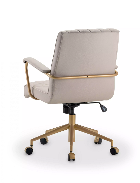 Cadeira com estrutura interna multilaminada de eucalipto, base com rodízios, relax e regulagem de altura em aço carbono cromado ou pintado.