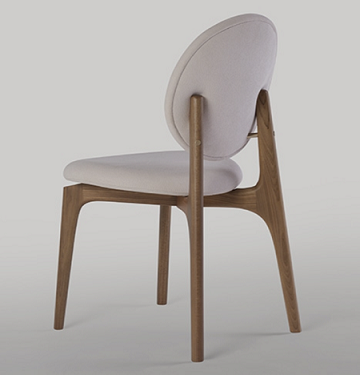 Com estrutura interna em multilaminado anatômico estofada. Base fixa em madeira maciça tingida. Detalhe em metal pintado.