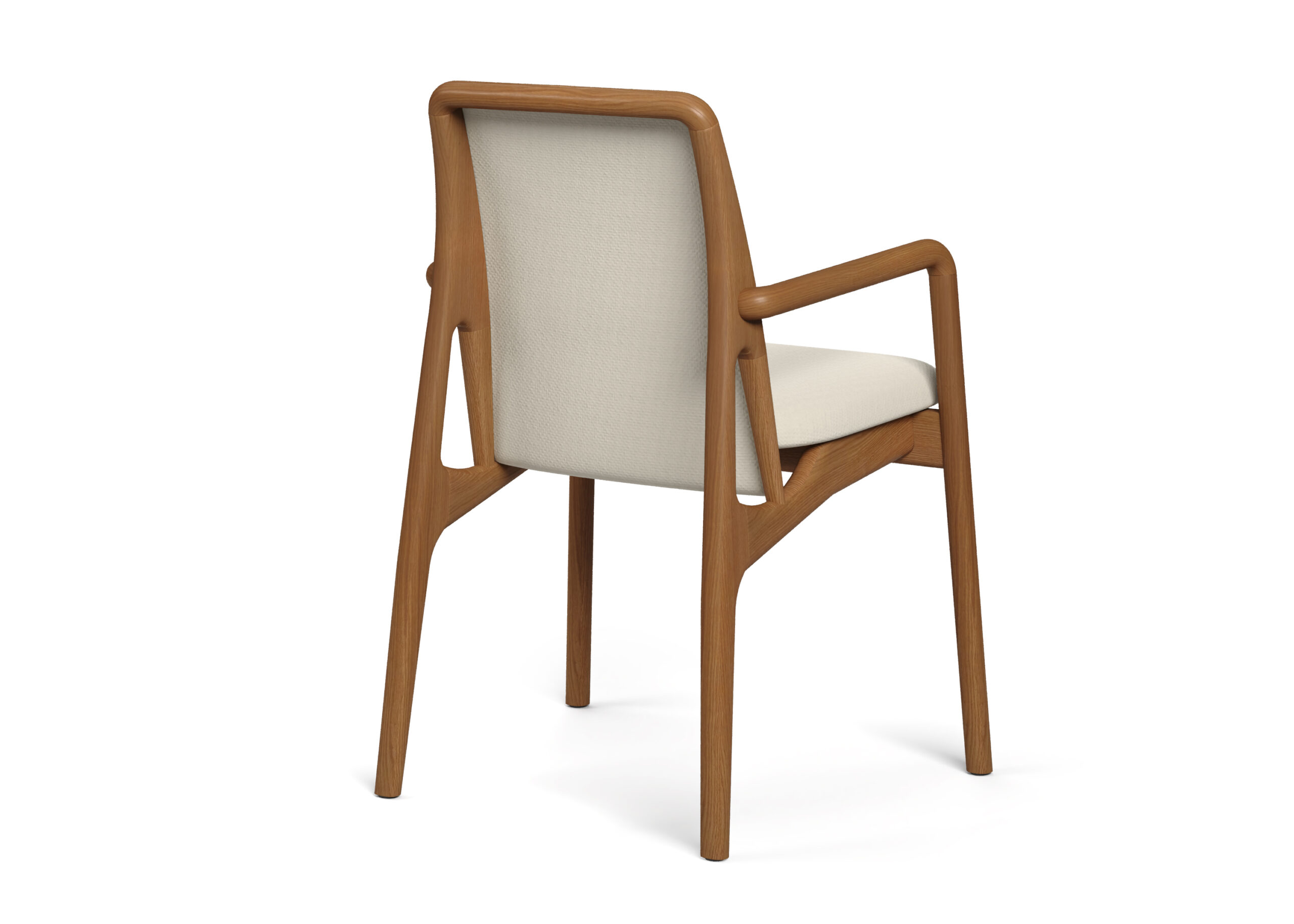 Possui uma estrutura leve e fluida, assim como suas linhas. Dessa forma, a cadeira exala uma sensação de graça e sofisticação, enquanto oferece conforto e funcionalidade.