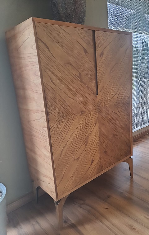 • O tom cinamomo traz uma presença marcante, com veios de madeira naturais e textura rica.