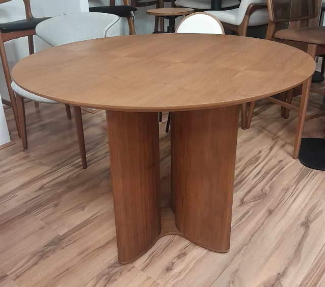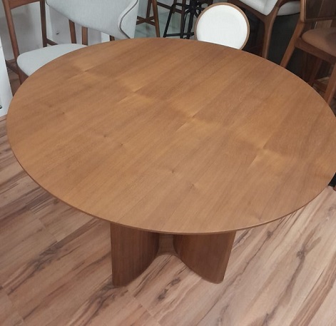 A Mesa Soho é uma peça que combina elegância, funcionalidade e personalidade em um único design. Seu visual contemporâneo destaca-se especialmente pela base escultórica formada por lâminas de madeira curvos, que criam um efeito leve, moderno e extremamente sofisticado.