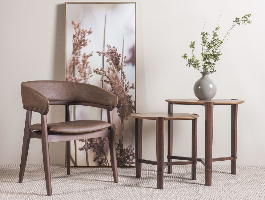 A mesa de apoio Blu combina beleza e funcionalidade em um design versátil, perfeito para diferentes ambientes. Sua proposta com três pés, todos em madeira maciça, destaca um visual moderno e leve, especialmente pelos pés aparentes sob o tampo, um detalhe que reforça seu charme contemporâneo.